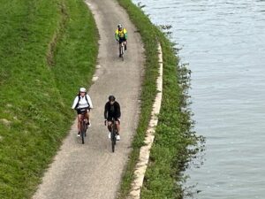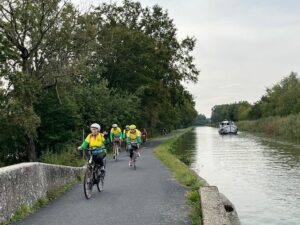 Ils étaient 14 membres du club pour la traditionnelle sortie familiale du dimanche 16 octobre organisée par Sigrid et Jean-Michel, après plusieurs années sans pouvoir l’organiser pour cause sanitaire ; le départ était donné de Châtenois (67), direction Scherwiller, Dambach-la-Ville avec la visite de la Chapelle St-Sébastien perchée sur les hauteurs, Blienschwiller, Epfig et son ossuaire de la Chapelle Ste-Marguerite, Stotzheim, Zellwiller, Bourgheim où le repas de midi fût tiré des sacs sur la place du tilleul, Valff, Westhouse (maison de Hansel et Gretel), Benfeld, Huttenheim, Sermersheim, Kogenheim, Ebersmunster avec la visite de la magnifique Abbatiale de style baroque, Scherwiller et retour à Châtenois. Belle balade de 66 km sur des pistes cyclables bien appréciées de tous (très peu de routes empruntées), hormis dans les jolis villages traversés, avec un temps enfin de la partie, surtout l’après midi et le retour du soleil, avec une température moyenne de 19° ; satisfaction de l’ensemble des participants présents pour cette journée conviviale et remerciements aux organisateurs.