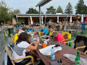 Très belle journée ce dimanche 28 septembre pour la traditionnelle sortie familiale organisée par Sigrid et Jean-Michel Faque, malgré la fraîcheur matinale des premiers km, qui n’ont pas trop gênés les 15 participants, partis de Saint-Quirin (57) direction le col du Donon, avec le dénivelé qui s’annonçait ; arrivés au sommet, ils sont descendus vers Abreschviller et ont pris le repas tiré des sacs à Grand Soldat. Ils sont repartis vers le col de St-Léon, Walscheid, Troisfontaines, Hartzviller, Abreschviller, Vasperviller et retour à Saint-Quirin ; ils ont parcourus 68 km pour 1017 m de D+ (température moyenne 18°). Ils ont repris les voitures direction Corcieux, pour prendre un diner convivial, accompagnés de 8 convives supplémentaires ; tous ont été enchantés de cette belle sortie et remercient vivement les deux organisateurs, et pensent déjà à l’édition 2026 !